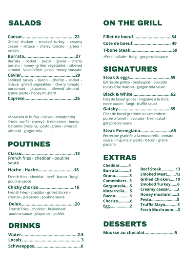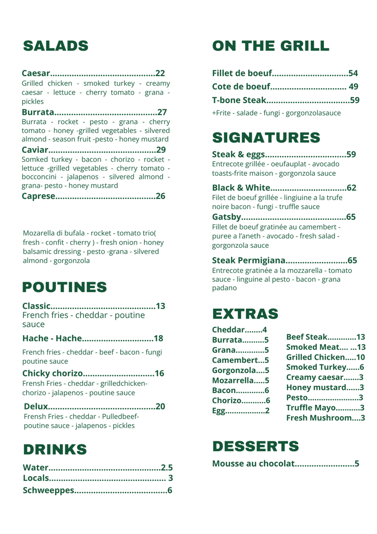 Discover gourmet burgers, pasta, steak, salads, and poutines made with fresh, high-quality ingredients.
